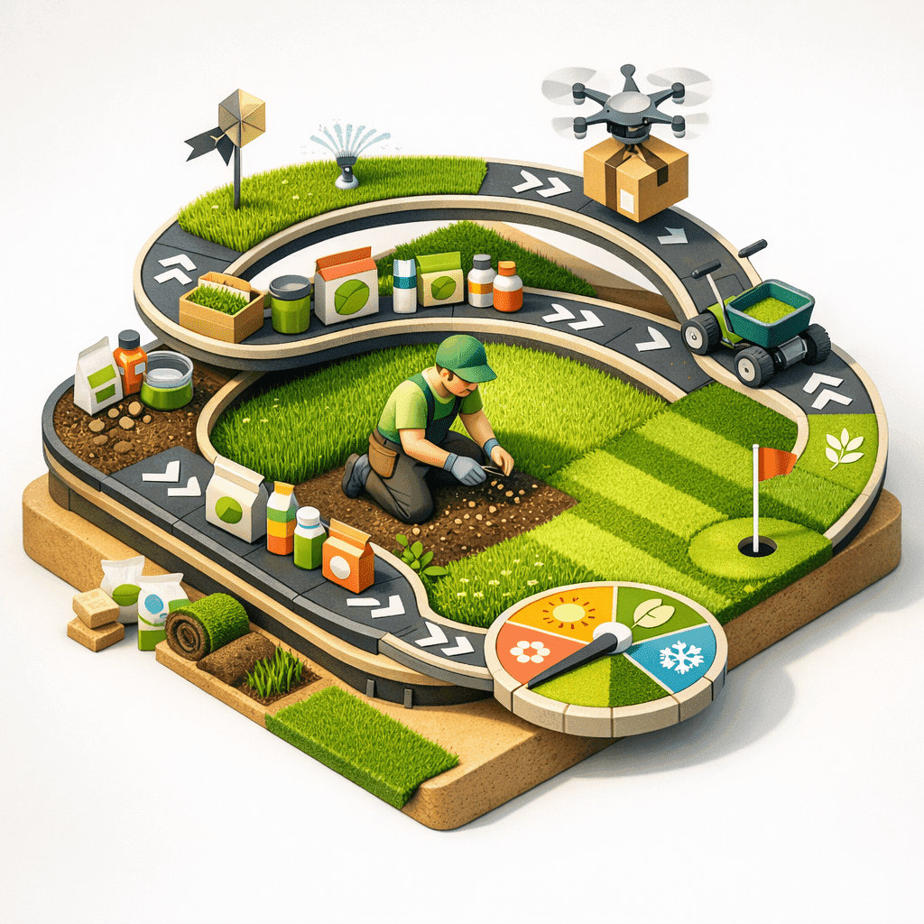 - GrassGuru beginnt mit einer Analyse des Rasens - welches Ziel will der Besitzer erreichen (Weniger Unkraut, weniger braune Stellen, dichterer Bewuchs etc.).