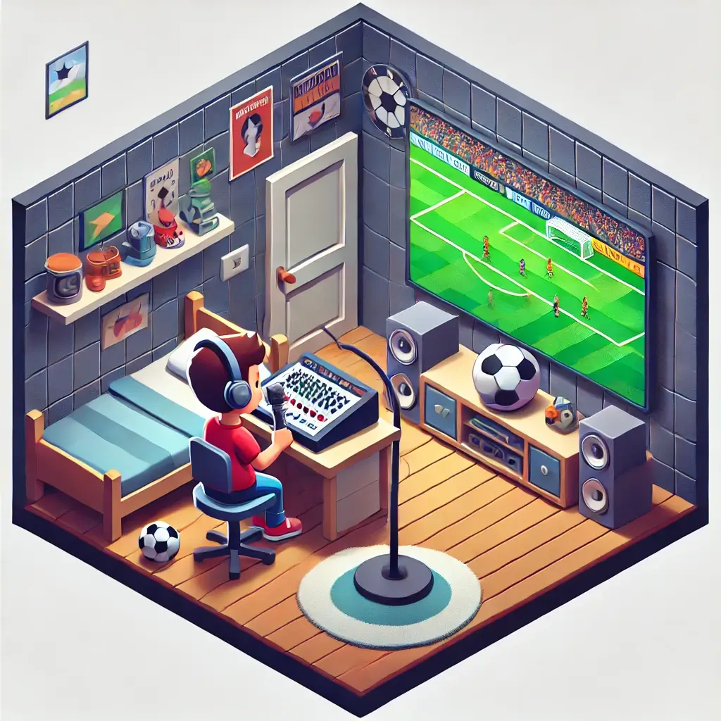 Was ist die Idee? Du baust eine Plattform, die es Amateur-Kommentatoren einfach macht, Spiele zu kommentieren und ein Publikum zu finden. Overlays, Sound-Effekte, Highlights, Kamera-Einstellungen und die Möglichkeit, die besten Clips für Social Media zu verwenden.