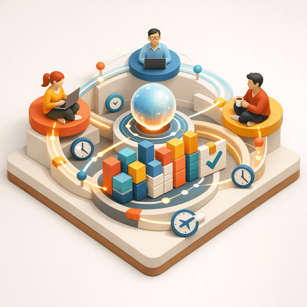 Die naheliegende Lösung ist ein KI Agent, der die Kalender der Beteiligten kennt und daraus Termine setzt. Er sieht Verfügbarkeiten, Regeln und Präferenzen. Er schlägt nicht nur Zeiten vor, er bucht. Für zwei Personen oder für zehn. Mit Puffer, mit Fokusblöcken, ohne Pingpong. Man schreibt nur: „30 Minuten diese Woche mit X und Y.“ Der Rest erledigt sich.